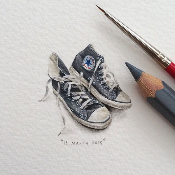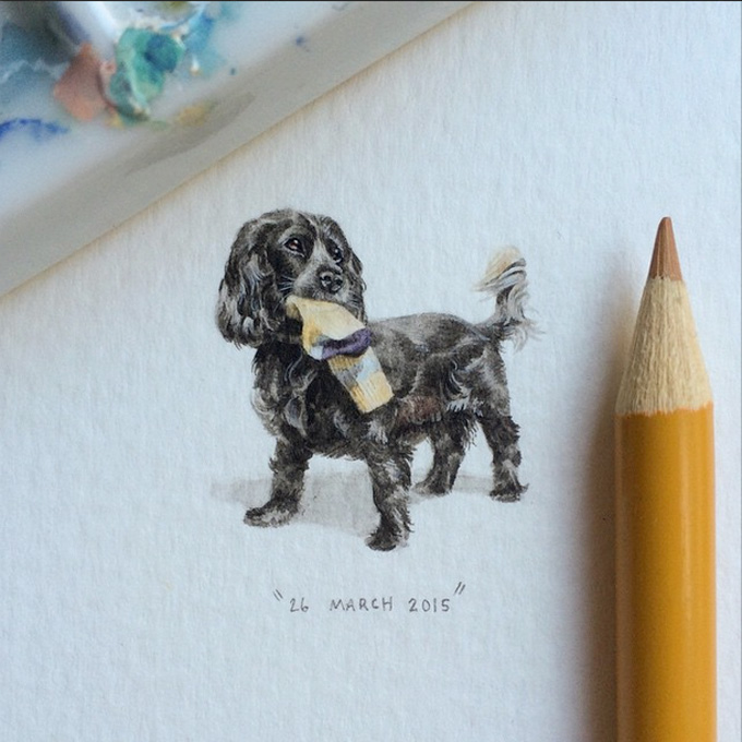 A artista Sul-Africana Lorraine Loots é especialista em pintar miniaturas. Sua conta no Instagram já tem mais de 15 mil seguidores e isso porque ela usa a plataforma para leiloar sua arte. A Lorraine criou projetos anuais onde em cada dia desenhava uma minituatura diferente e leiloava na internet. Em 2013 foi o 365 Paintings for Ants e em 2014 foi o 365 Postcards for Ants. Em 2015, ela montou o Potluck 100. Serão 100 artes diferentes seguindo quatro categorias: Microcosm Mondays, Tiny Tuesdays, Fursdays and Free Fridays. Com lápis e aquarela, a artista irá disponibilizar cinco cópias de cada desenho para venda e estarão disponíveis no final do ano.